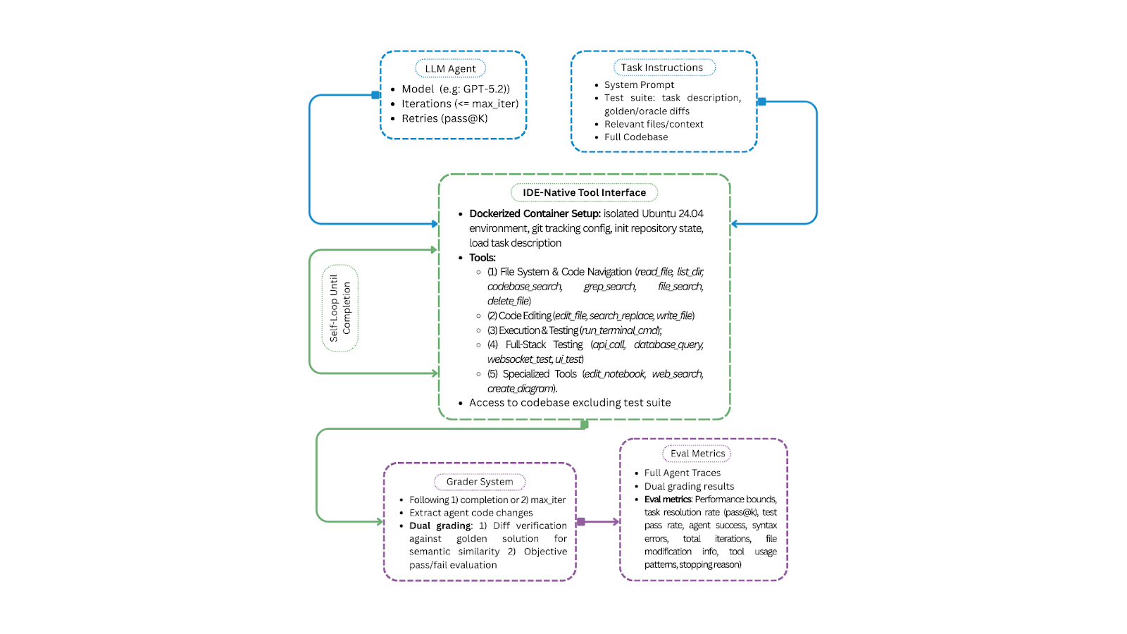 The core of IDE-Bench is a sophisticated evaluation harness designed for reproducibility and realism.